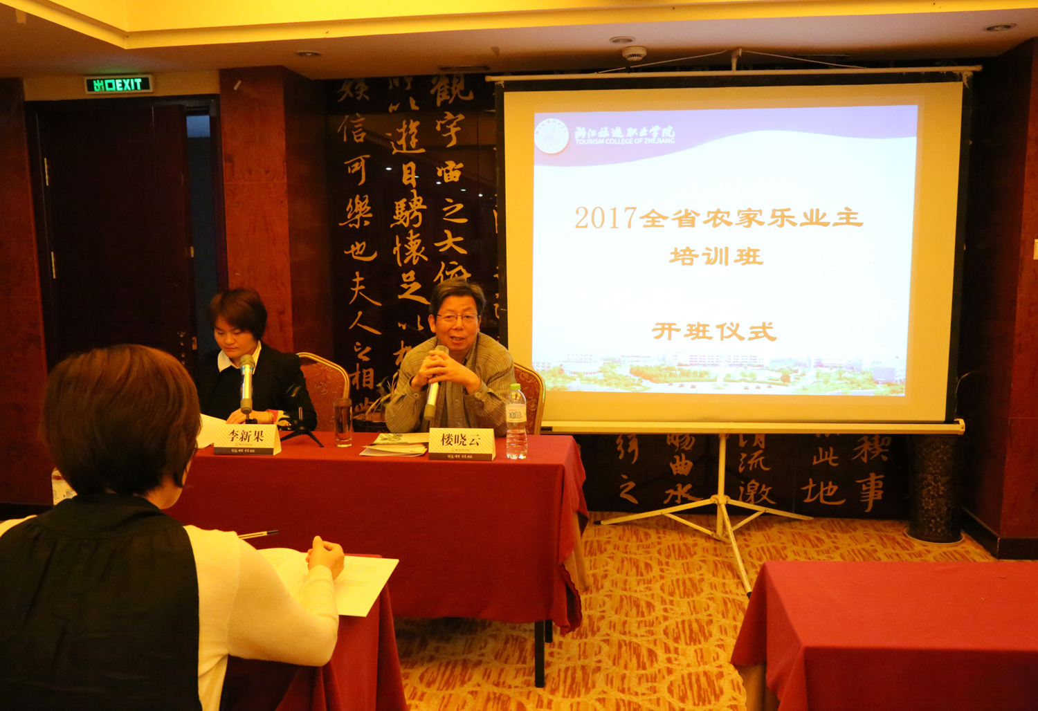 2017年10月23日,全省农家乐业主培训班在浙江旅游职业学院旅苑酒店成功举办,省农办经济发展处处长楼晓云,浙江旅游职业学院胡敏教授等亲临现场,为来自台州、舟山、丽水三个市十余个县的106位农家乐特色村负责人授课指导,这是继续教育学院受浙江省委、省政府农业和农村工作办公室的委托举办的再一次高规格培训项目。